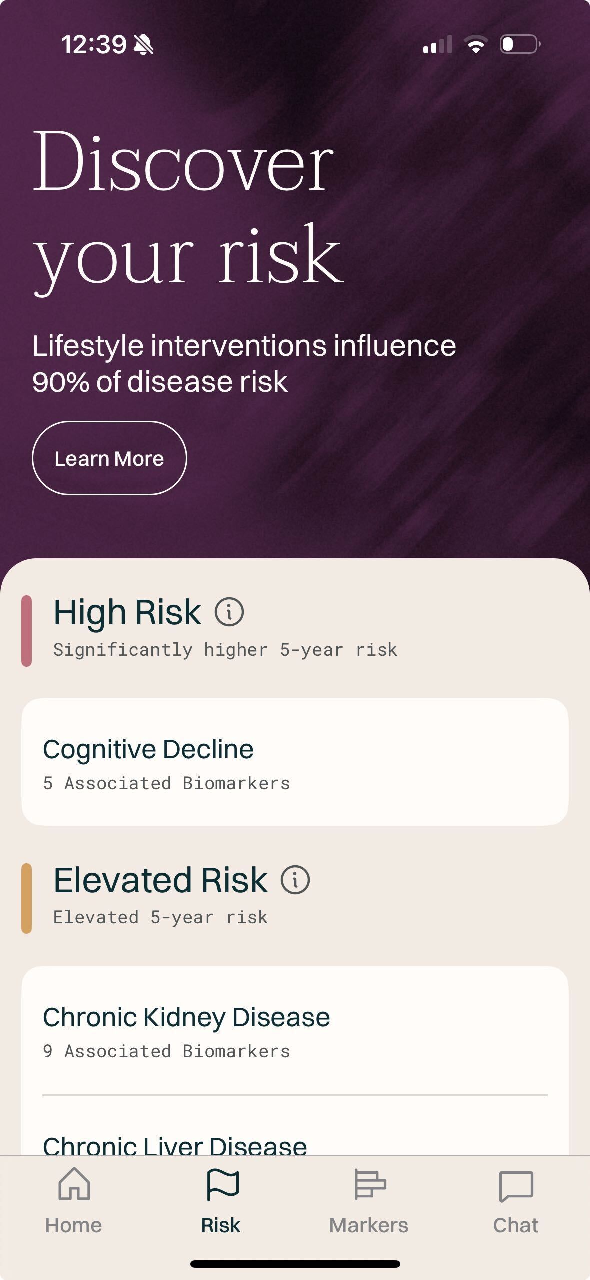 Standard tests check basic markers like cholesterol. We analyze 110+ biomarkers, using epigenetic science, that reveal disease risk 5-10 years before symptoms arise. Then we show you exactly how to lower that risk with personalized recommendations and quarterly tracking.